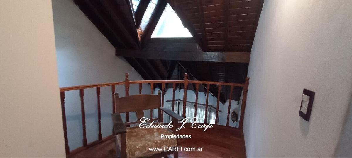 La propiedad se desarrolla en dos plantas. En Planta Baja dispone de entrada de auto, garage, living-comedor con piso entarugado de madera, que se conecta con una cómoda cocina comedor. A continuación un quincho galería con salida al garage y al jardin. Parque con pileta.