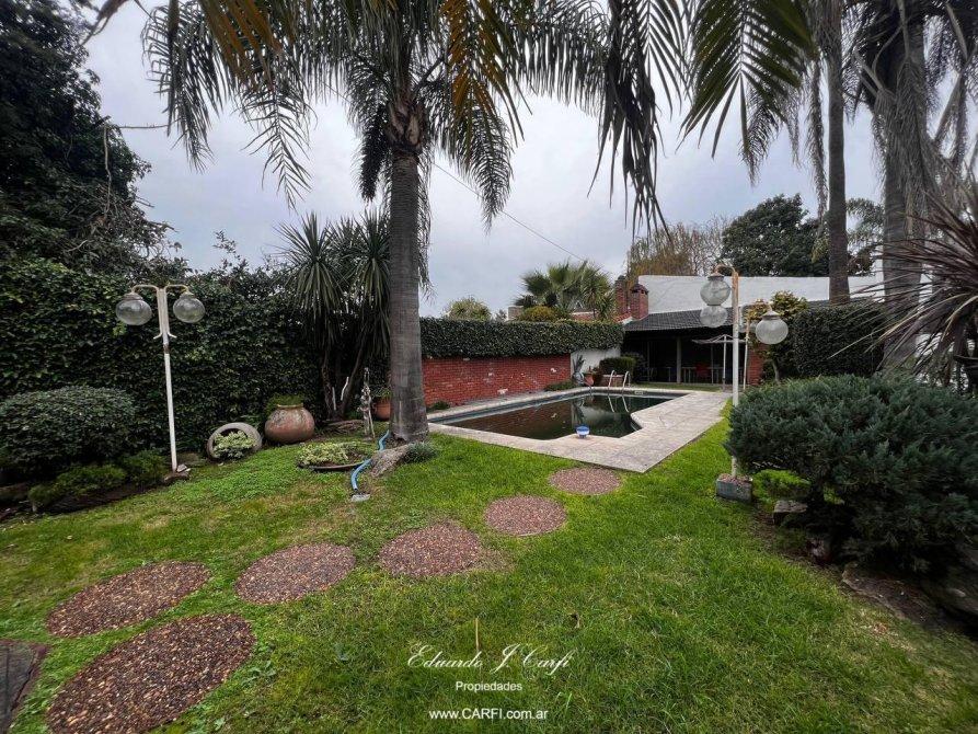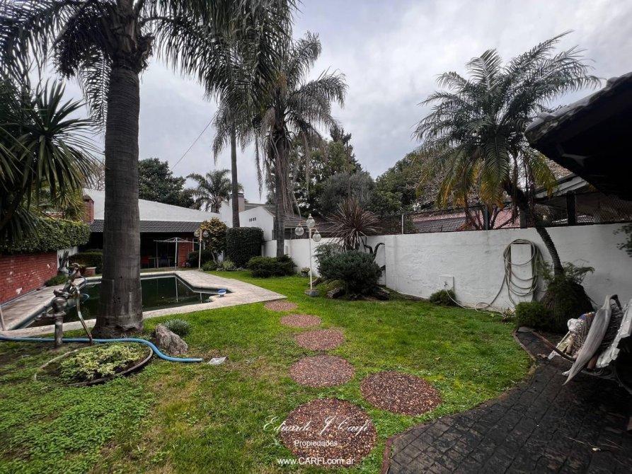 El exterior de la propiedad es un auténtico oasis, con un hermoso parque que alberga una piscina, ideal para disfrutar en familia. Un quincho completamente equipado con parrilla, baño, y cocina con mesada y bacha, ofrece el espacio perfecto para reuniones y eventos.