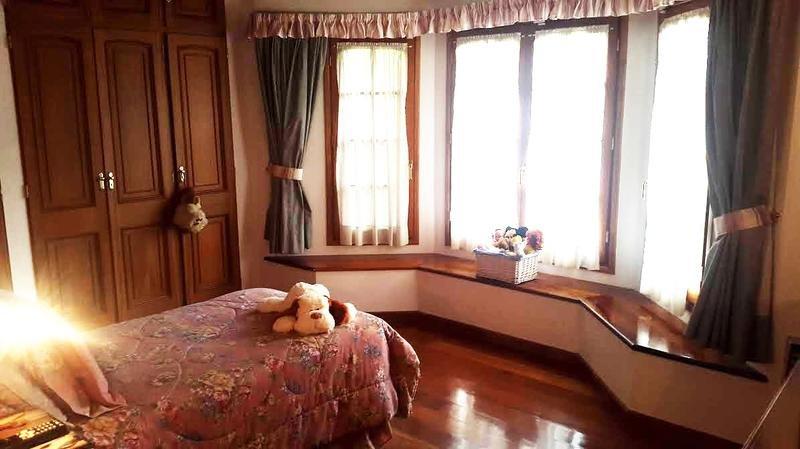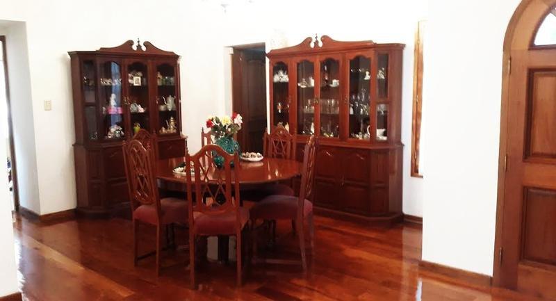 Amplio parque con quincho que cuenta con habitación y baño de servicio y garagge cubierto para dos autos.
