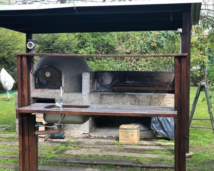 Parque delantero con horno pizzero, huerta, parrilla y cuarto de guardado.