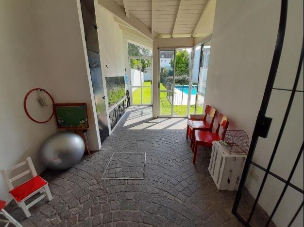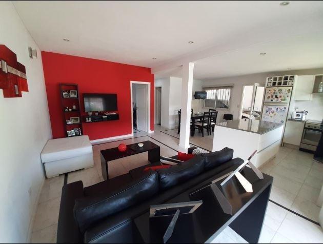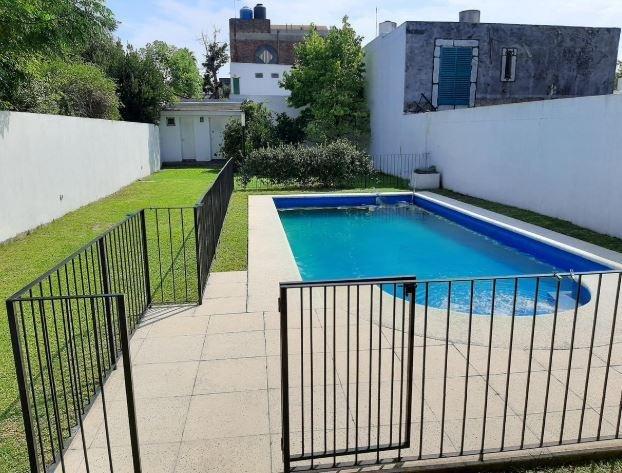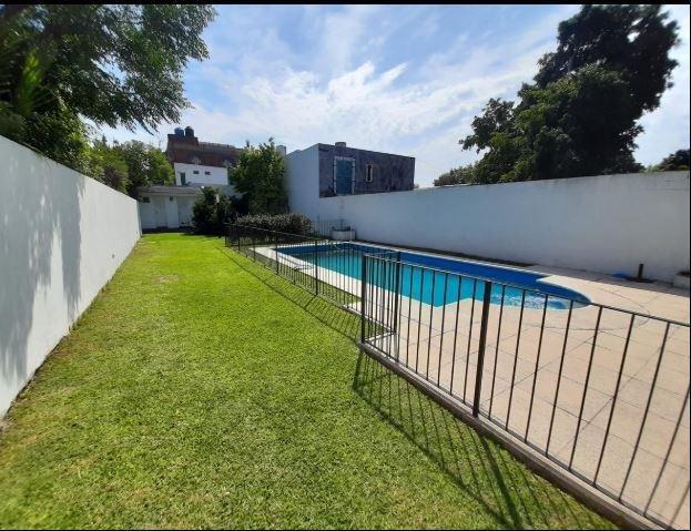 Amplio living con cocina comedor integrada, toilette de recepción, escritorio (con posibilidad de adaptarlo como dormitorio), y un funcional garage-quincho con capacidad para dos vehículos, parrilla y sistema de calefacción independiente. En el exterior, se destaca una pileta de aproximadamente 8 x 4 metros. Al fondo del terreno, la propiedad cuenta con un baño adicional y un cuarto de guardado.