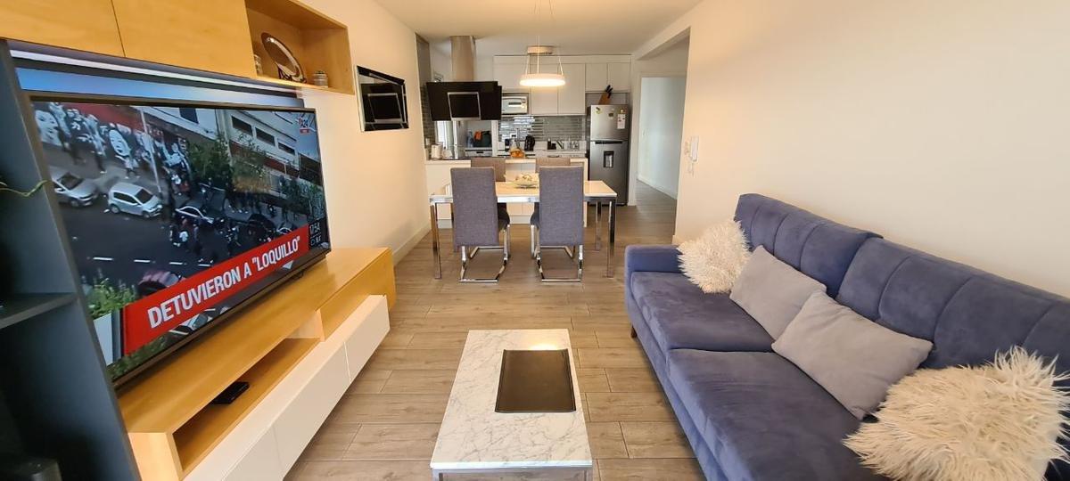 El departamento esta ubicado en un Séptimo Piso Frente, consta de cocina con barra desayunadora, Living comedor integrado, dormitorio en suit con placard y baño completo y un segundo cuarto con Placard, baño completo.