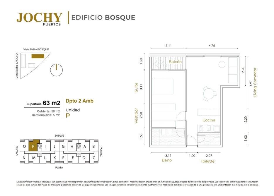 JOCHY Puertos - Edificio BOSQUE – Dpto. 2 Ambientes con Vista al Bosque.