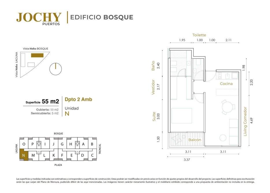 Las superficies y medidas indicadas son estimativas y corresponden a superficies de construcción. Estas podrán ser modificadas sin previo aviso en función de ajustes propios del desarrollo del proyecto. Las superficies definitivas para escrituración serán las que surjan del Plano de Mensura, pudiendo diferir de las aquí mencionadas. Las imágenes tienen carácter meramente ilustrativo y el mobiliario exhibido corresponde a una propuesta de ambientación no incluida en la entrega.