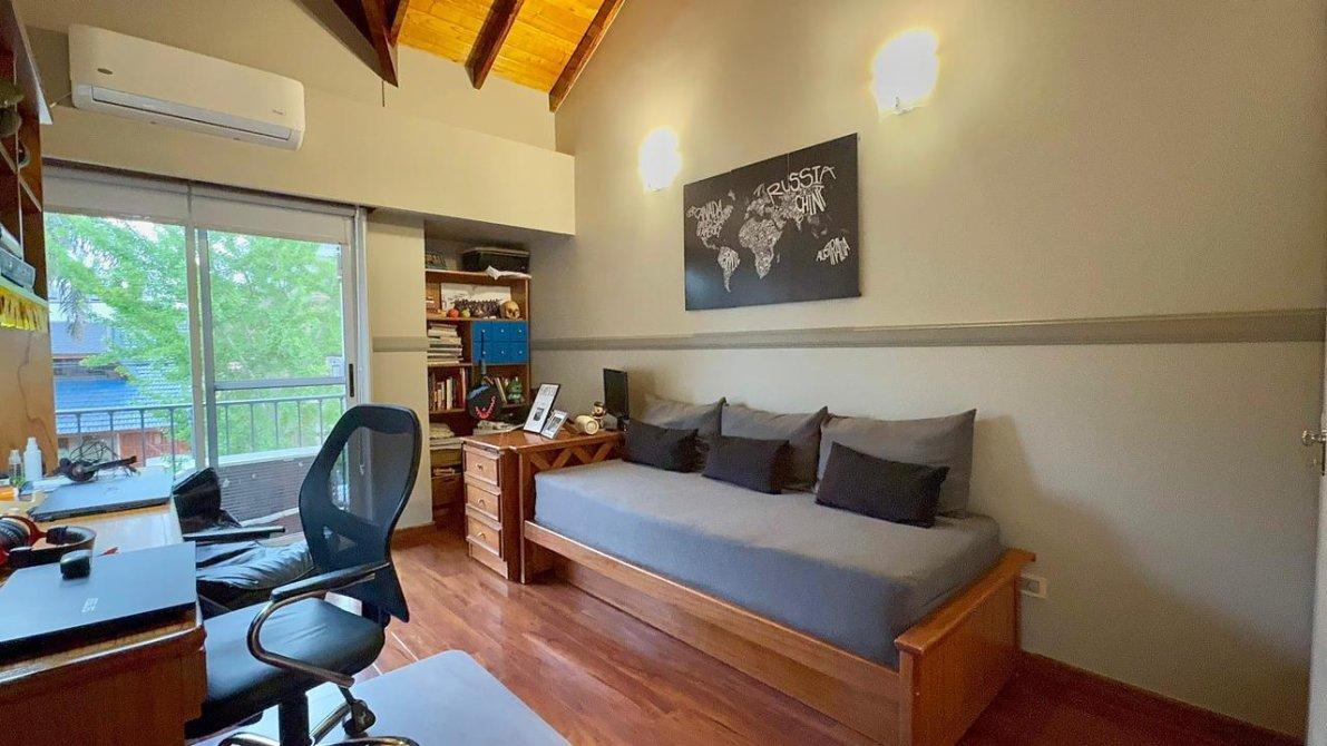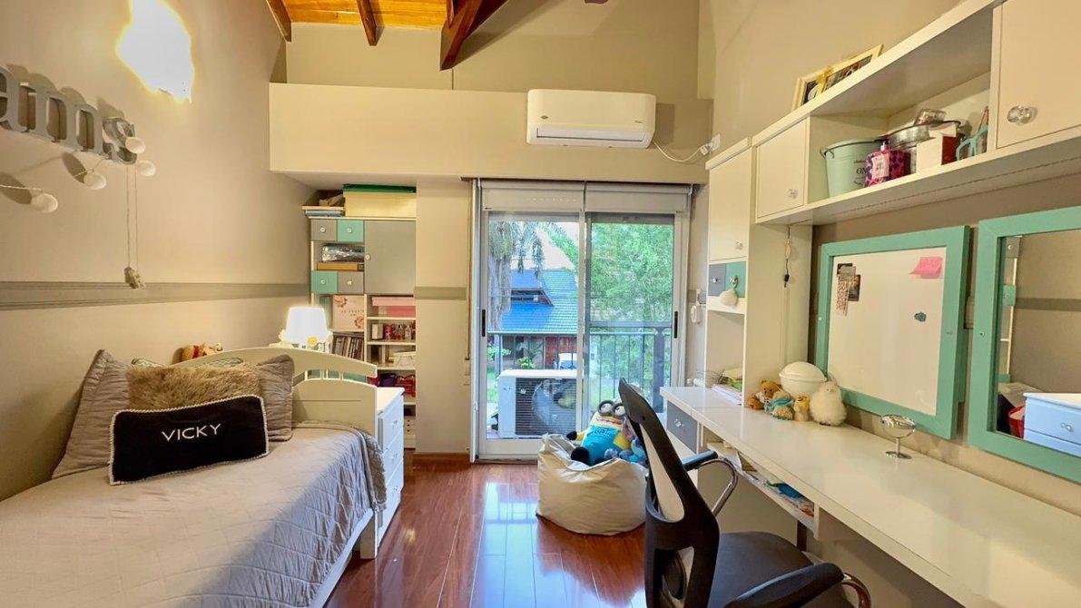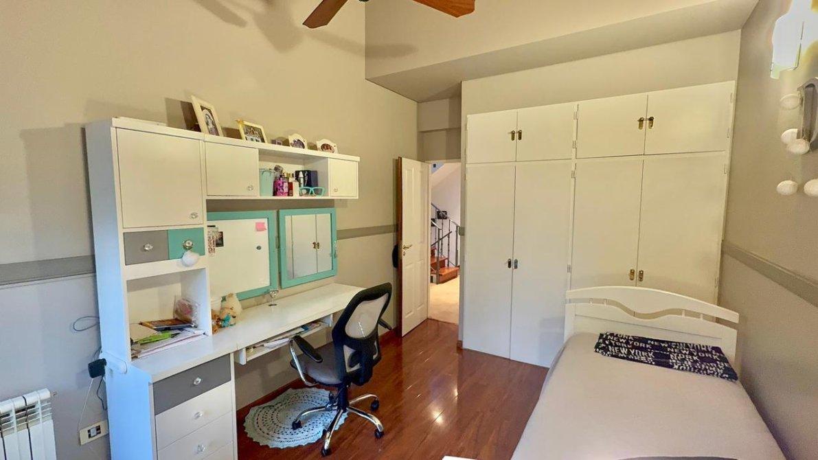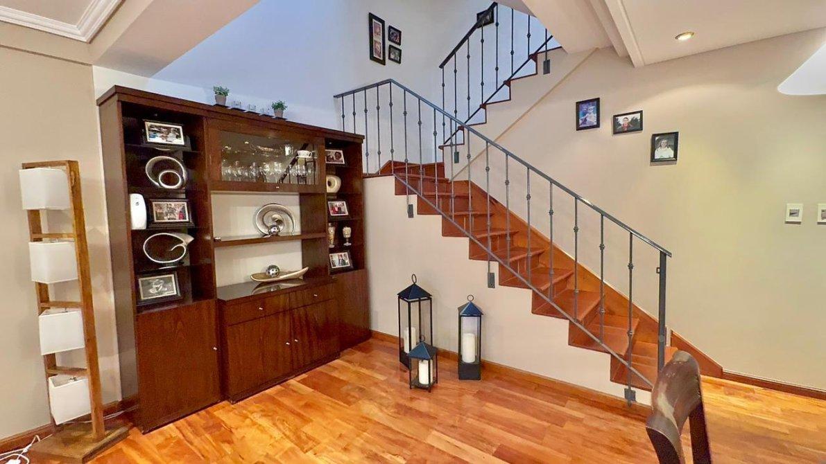 La planta alta dispone de 3 dormitorios, uno de ellos en suite, y un segundo baño completo. Los pisos cerámicos  en las partes comunes y flotantes en los dormitorios, aportando calidez y elegancia. Además, las aberturas cuentan con DVH (doble vidrio hermético),  cortinas  sunscreem y persianas para mayor confort térmico y acústico.