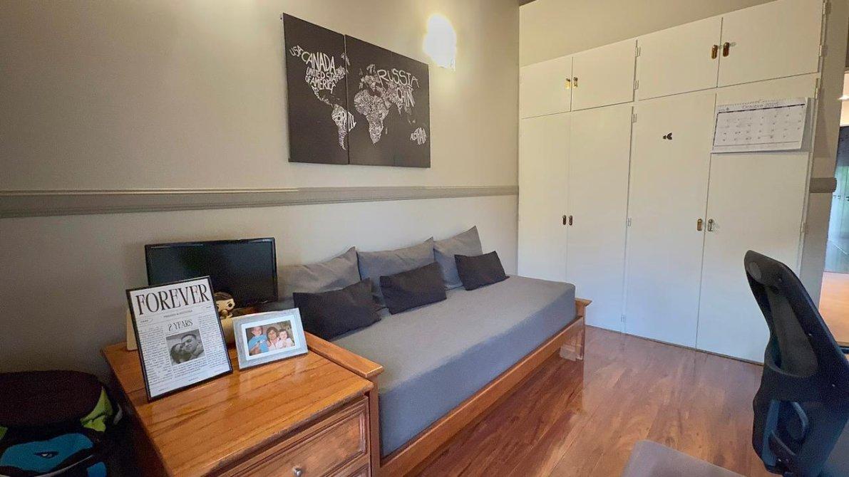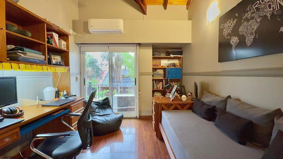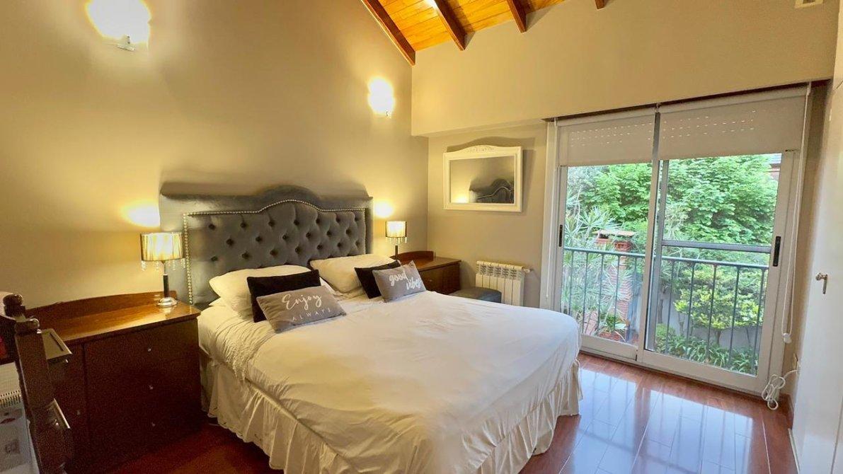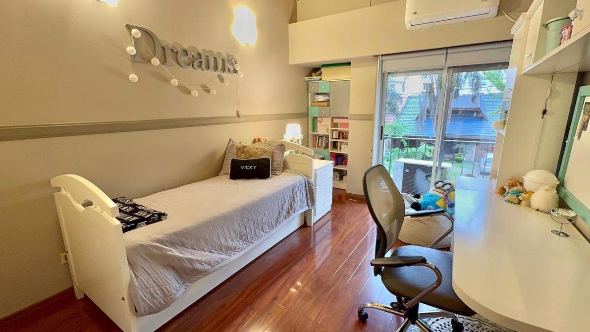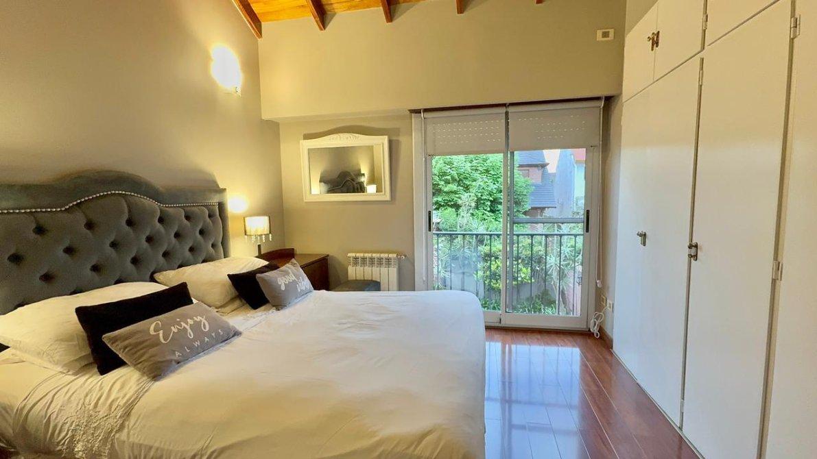 La planta alta dispone de 3 dormitorios, uno de ellos en suite, y un segundo baño completo. Los pisos cerámicos  en las partes comunes y flotantes en los dormitorios, aportando calidez y elegancia. Además, las aberturas cuentan con DVH (doble vidrio hermético),  cortinas  sunscreem y persianas para mayor confort térmico y acústico.