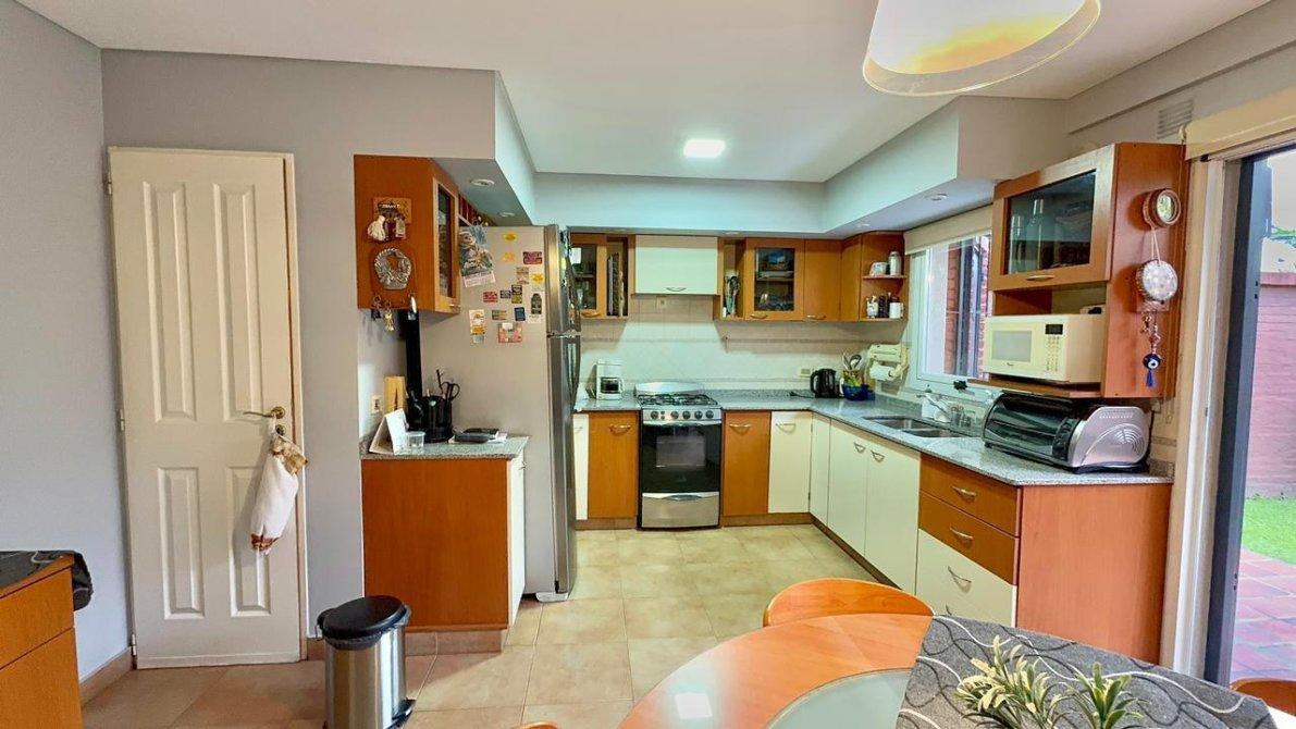 En planta baja se desarrolla una cómoda y luminosa cocina comedor diario, un amplio living comedor, con piso de madera entarugada con tratamientos de hidro laqueado, con calefacción por radiadores en todas las plantas, hall distribuidor y baño completo.