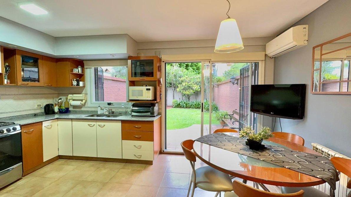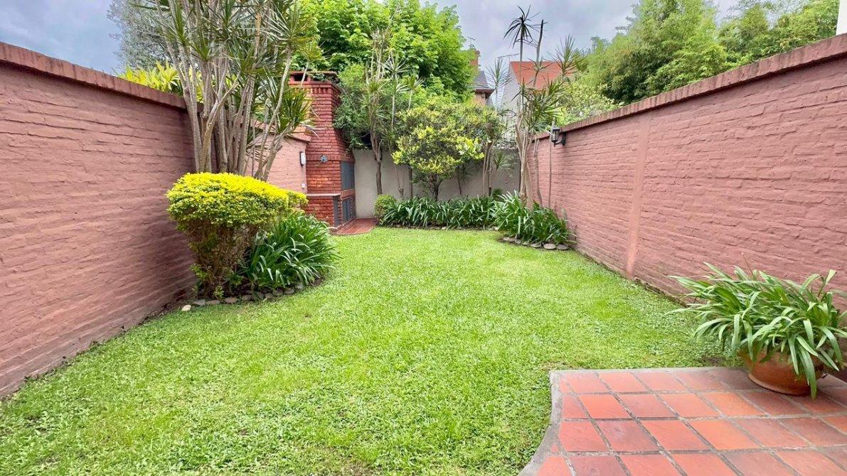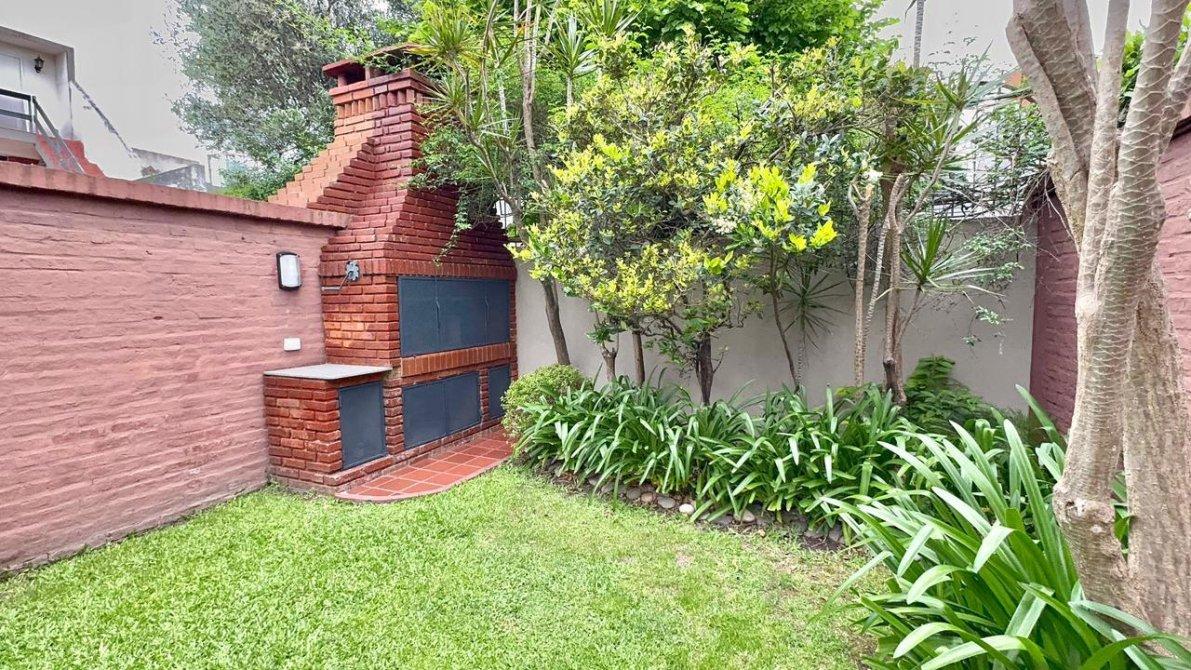 Al fondo, el jardín parquizado ofrece un espacio ideal para disfrutar al aire libre, con iluminación propia y parrilla.