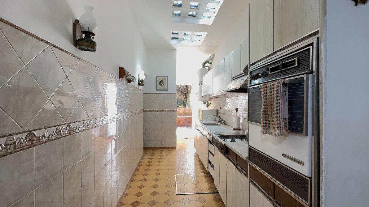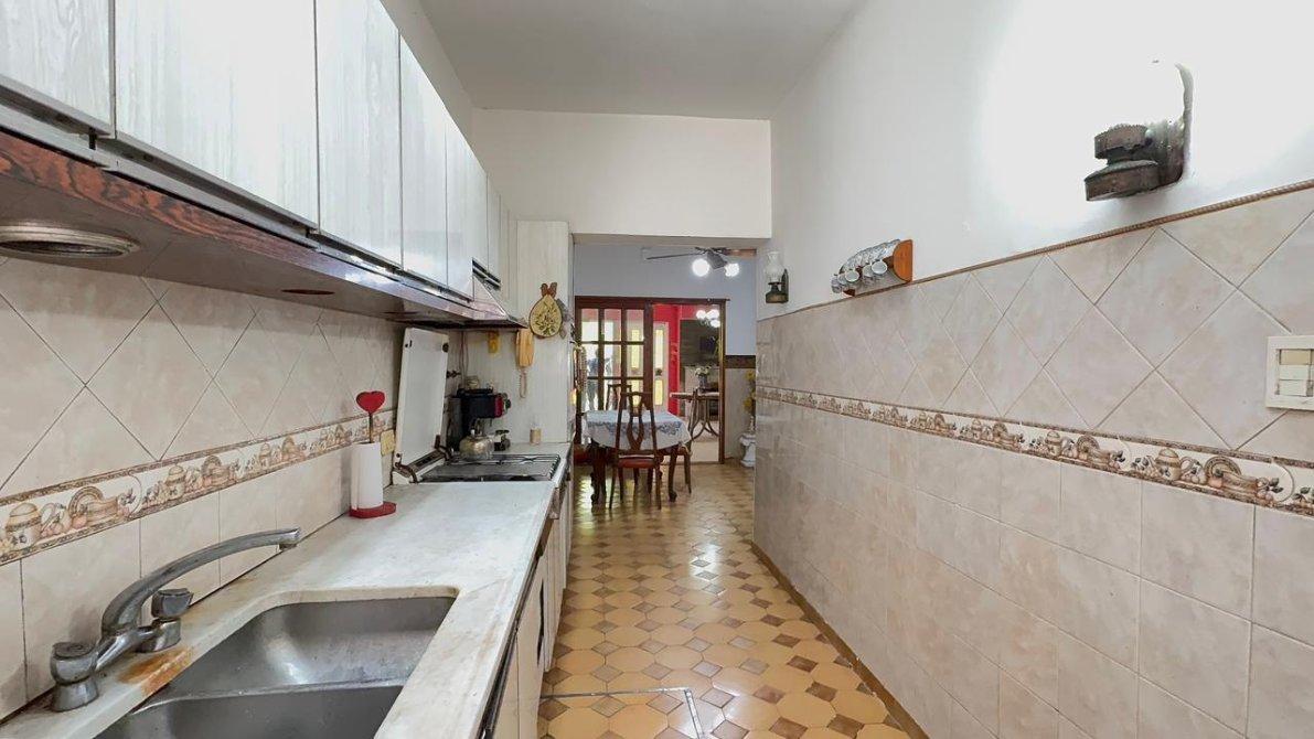 La cocina comedor diario, sectorizada del living mediante una puerta corrediza de madera con vidrio repartido, ofrece un espacio práctico y luminoso para disfrutar en familia.