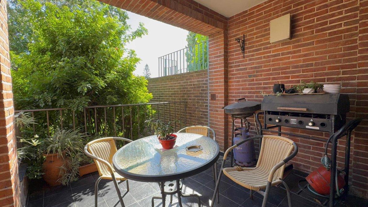 Galería y jardín parquizado,fondo y quincho cerrado con parrilla.