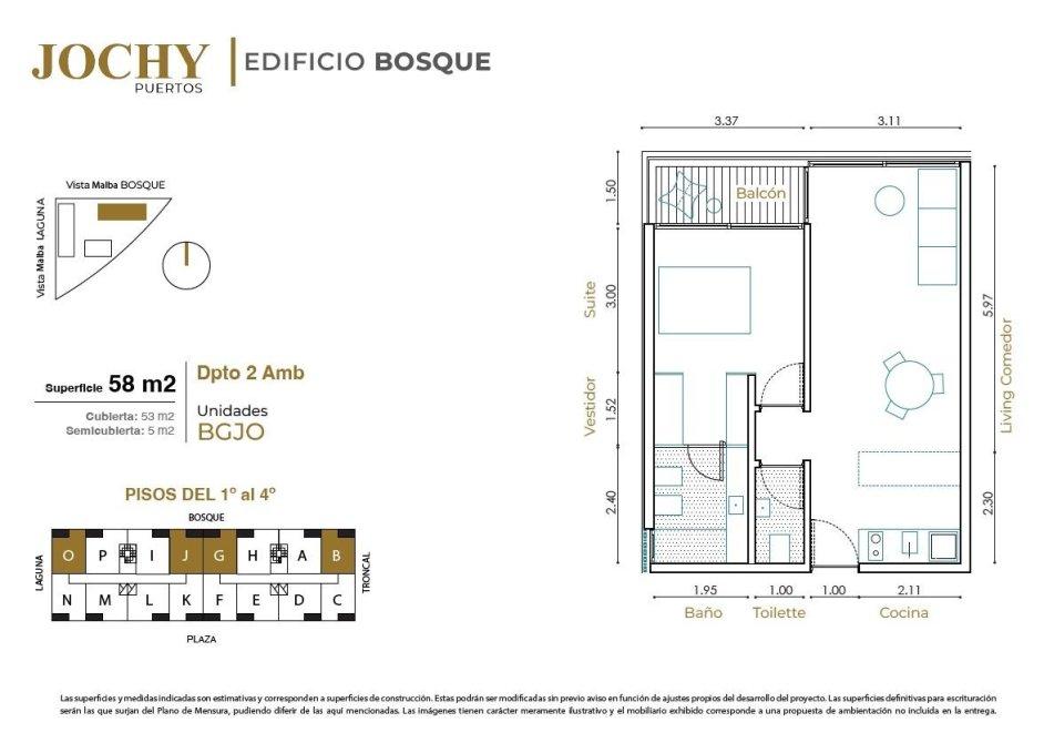 Superficie total 58m2