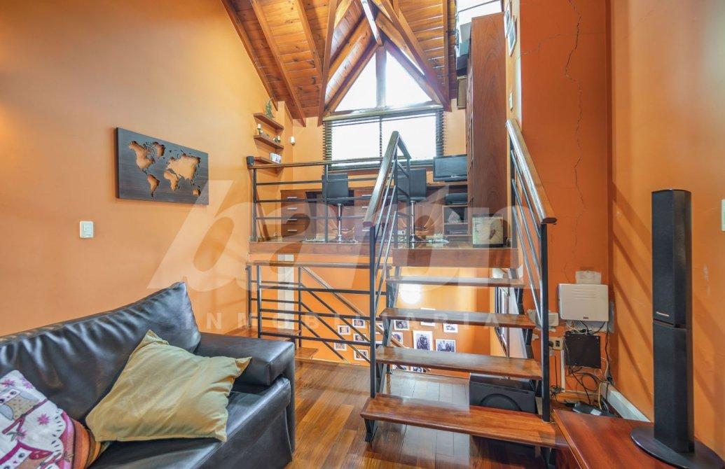 Mediante una cómoda escalera accedemos a la planta alta, donde encontramos una sala de estar con pisos de madera, ideal para espacio de lectura o área de relax, un escritorio y una tercera habitación con placard y vista al parque.