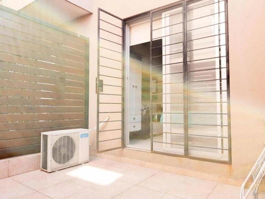 el patio tiene acceso directo a las áreas comunes del edificio parrilla y piscina. lo que lo hace mucho mas cómodo y accesible.