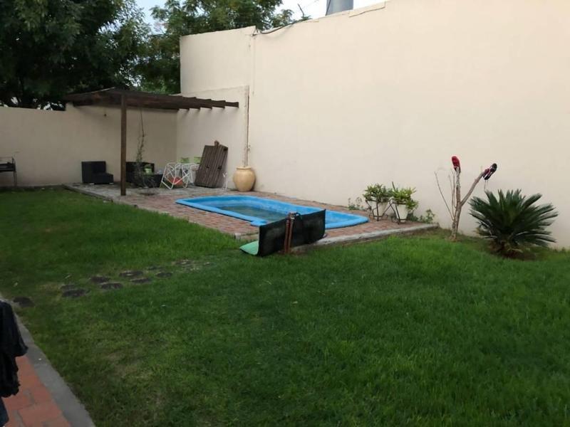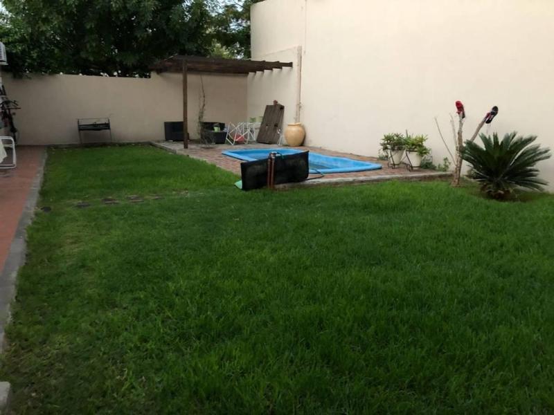Amplio chalet distribuido en una planta sobre lote de 17.42X18, living en recepcion, cocina comedor con vista al jardin, tres dormitorios con placard, dos baños completos, toilette de recepcion, garaje cubierto pasante para al menos dos o tres vehiculos, entrada a la cocina desde la cochera. Fondo libre con pergola y piscina de fibra de vidrio.