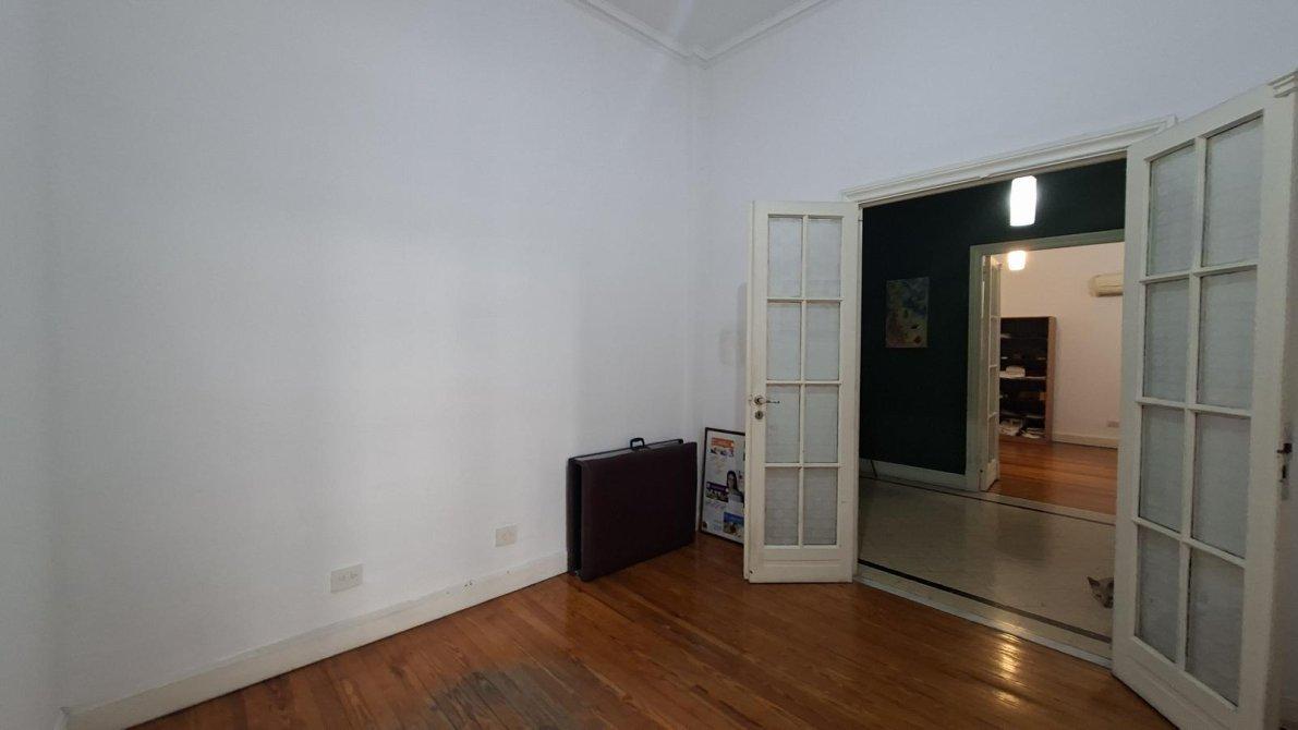Cuenta con 100 m² totales y cubiertos, 3 ambientes amplios y luminosos, 2 dormitorios, un ambiente divisible o escritorio, baño completo y toilette. Cocina independiente con muebles bajo mesada, techos altos y pisos de madera originales en excelente estado.