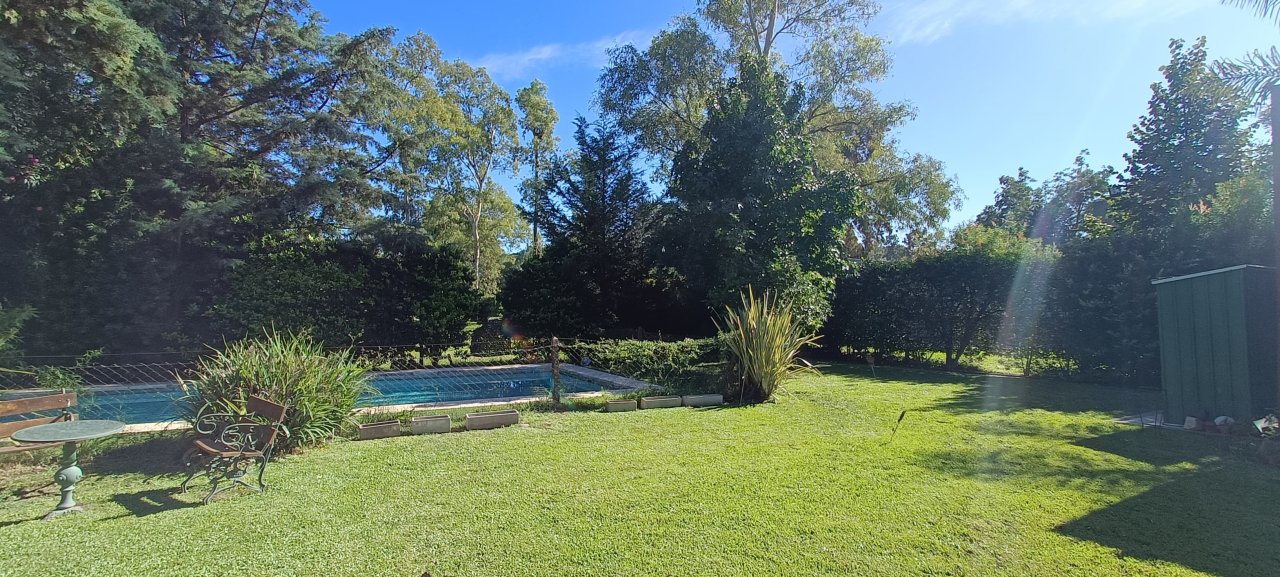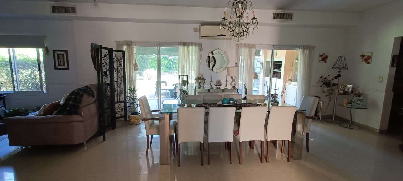 Ingresando por su puerta principal, encontramos un amplio living comedor con ventanales que se comunican con una galería techada con sector de parrilla y un amplio parque con pileta climatizada.