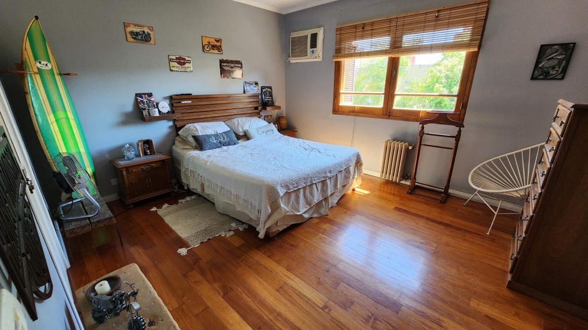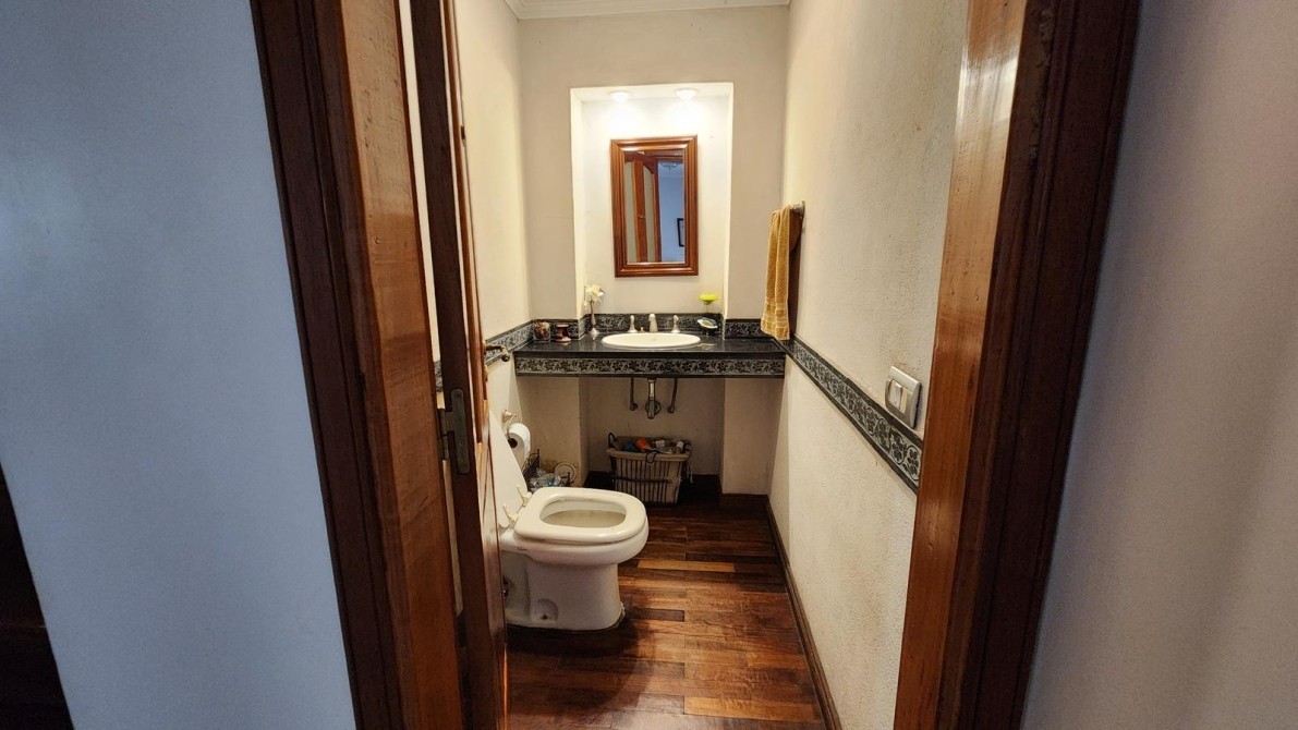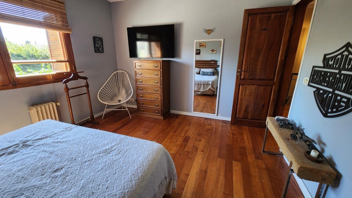 Planta alta (escalera de madera), 3 dormitorios, pisos de madera, uno con placard y uno con vestidor. Balcón. Baño instalado completo con mesada y 2 bachas, bañera y ducha.