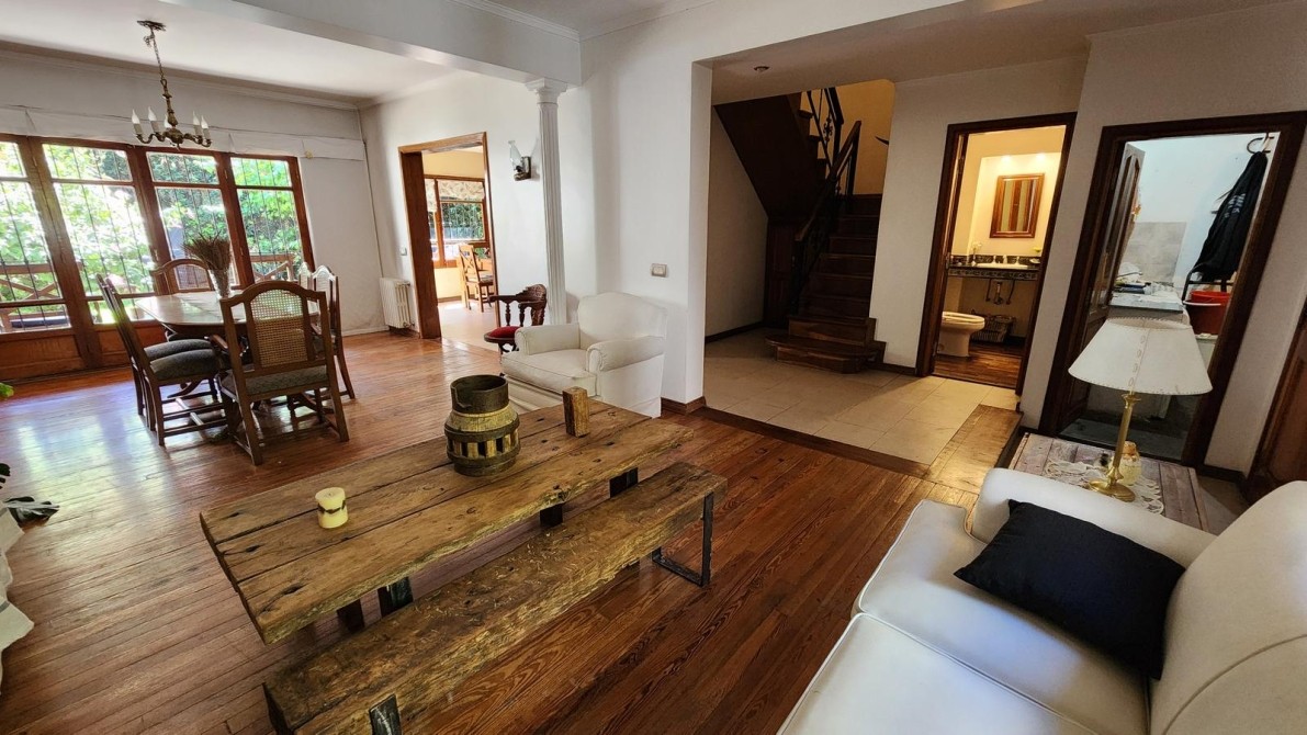 Planta baja: Garage. Estar/comedor 4x8 m2. Pisos de pinotea. Toilette. Cocina-comedor diario con isla. Parque de 130m aprox.