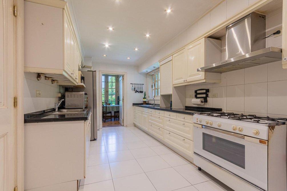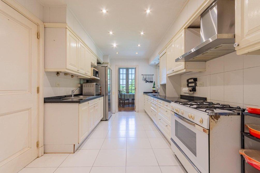 La zona de cocina es cómoda y conecta con un comedor diario que tiene vista al jardín, todo con gran luminosidad. Cuenta con dos ambientes más para despensa y lavadero / sala de plancha y con amplias dependencias de servicio. Todo este sector permite reciclarse para darle otra utilidad de ser necesario.