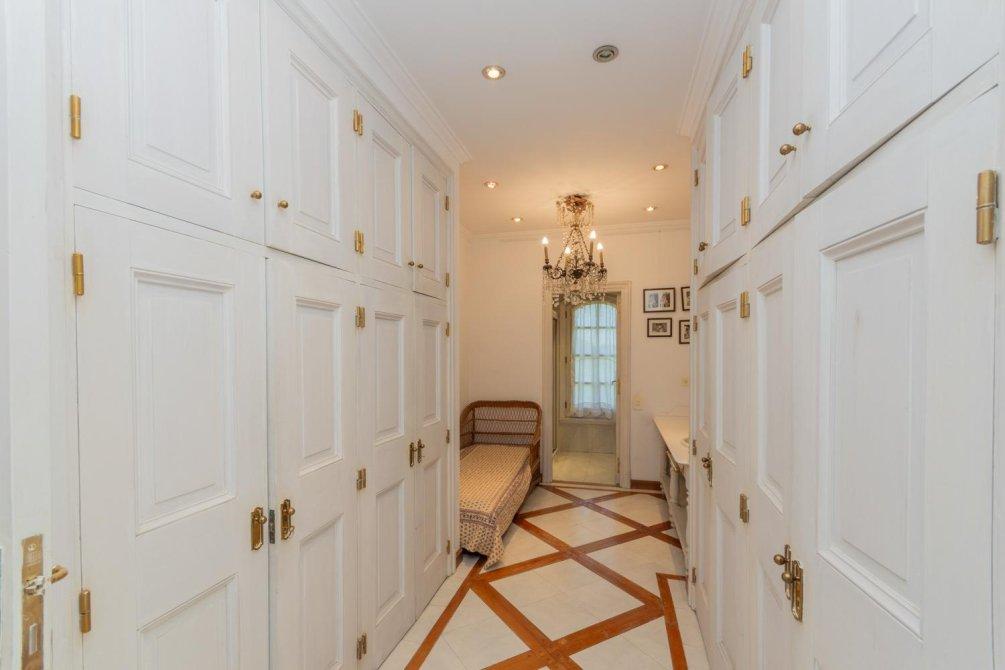 En la planta alta, a la que se accede por una elegante escalera o por ascensor, tenemos una Master Suite con chimenea en un ambiente muy grande (60 m2) con dos baños y dos vestidores a ambos lados del mismo, concebido para, si se desea, fácilmente dividir esta Master Suite en dos grandes dormitorios que también quedarían cada uno a su vez en suite con su propio baño, vestidor e importantes terrazas cada uno.