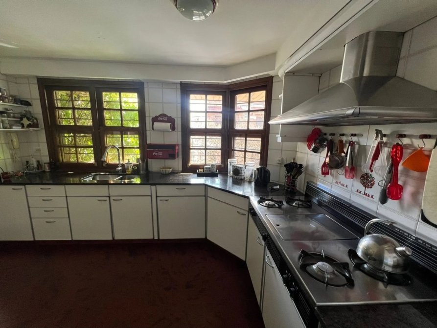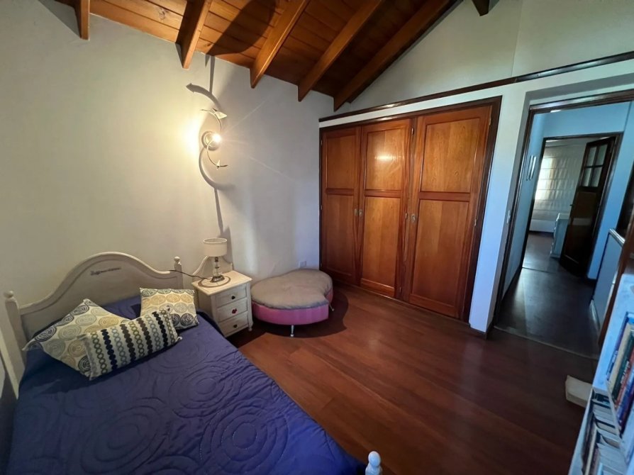 Distribuida en tres plantas, ofrece ambientes amplios, funcionales y muy bien definidos. Al ingresar, una elegante escalera en el frente conduce al interior, donde encontramos living, comedor, cocina, cuatro baños y cuatro dormitorios (uno con vestidor y otro con baño en suite). Además, cuenta con lavadero, quincho con parrilla, cochera cubierta para tres autos con portón automatizado y un imponente fondo ideal para disfrutar en familia.