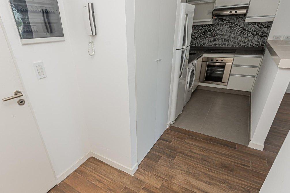 El departamento es de 2 ambientes a Estrenar con balcón al frente. Living- comedor con amplios ventanales y salida al balcón. Dormitorio en suite con Placard. Toilette. Cocina abierta al living con mesada de apoyo. Buen espacio de guardado. Lavadero integrado en la cocina, bajo mesada. El edificio cuenta con un amplio Sum con Parrilla en el último Piso.