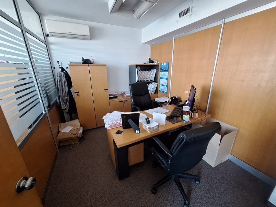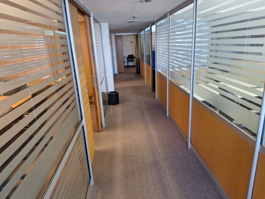 Esta integrada por multiples despachos, sala de firmas, depósito, todo de gran amplitud y compartimenteado con exelente cerramiento de carpinteria. Baños para hombre y mujer, cocina.