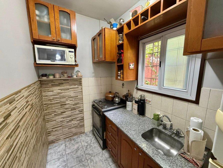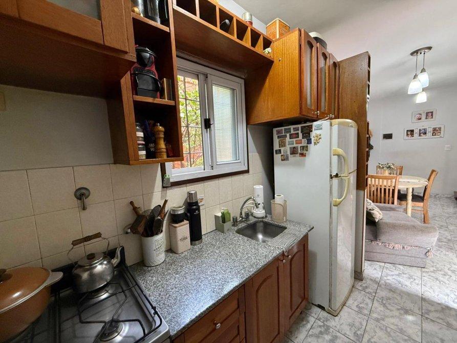 -La cocina se encuentra semi integrada al living, tiene todo el amoblamiento de alacena y bajomesada completo, artefacto de cocina a gas y una gran ventana lo cual la hace luminosa y ventilada.