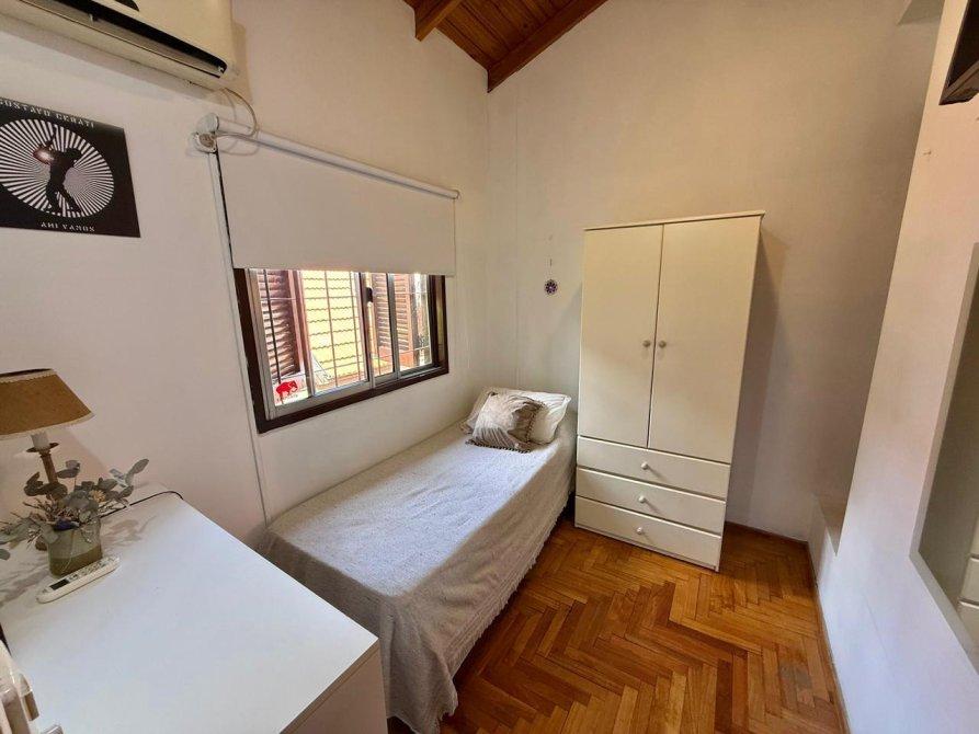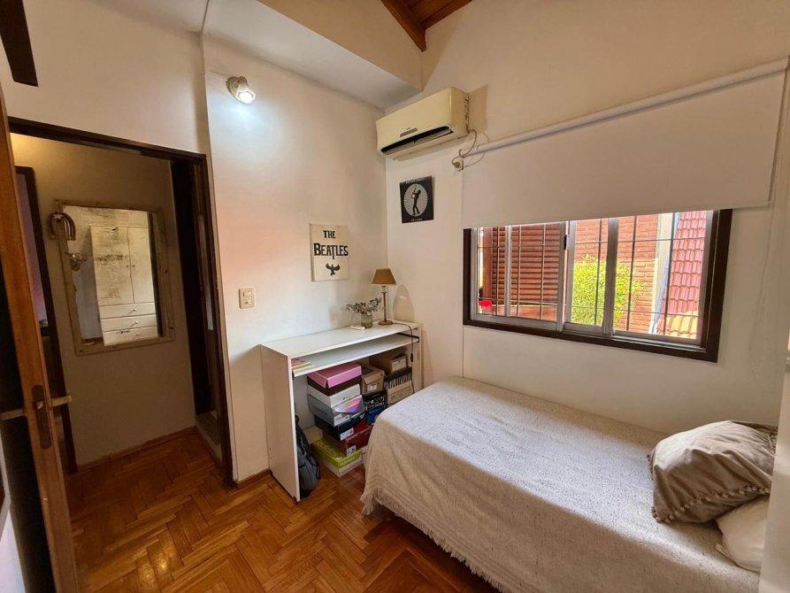 -Dormitorio secundario con pisos de parquet y aire acondicionado split.