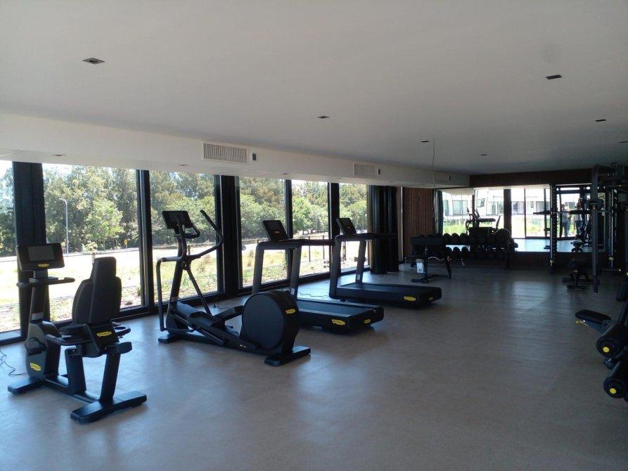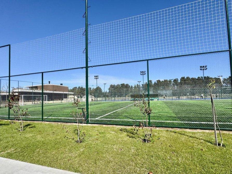 Espacio deportivo con pileta, canchas de tenis, futbol, paddle, playón y espacio para niños con plaza de juegos.