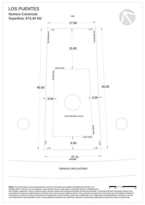 Lote de 875 m2, con orientación Noreste. Ubicado próximo a la entrada principal del barrio.