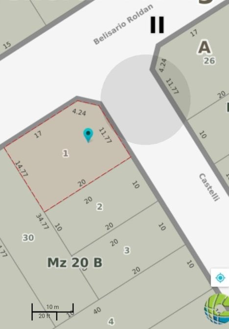-Lote esquina de 291 m², de forma irregular, ubicado en una muy buena zona de General Rodríguez.