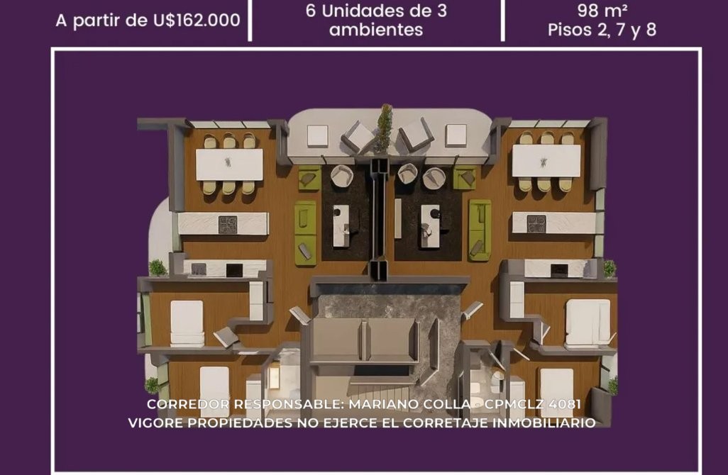 La marca “Vigore Propiedades” identifica únicamente un espacio de coworking y servicios administrativos/comerciales donde distintos profesionales matriculados en CUCICBA y en CPMCLZ alquilan puestos de trabajo y realizan sus operaciones en forma independiente, bajo su exclusiva responsabilidad profesional, conforme lo establece el artículo 15 de la Ley 2.340 de la Ciudad Autónoma de Buenos Aires y la Ley 10.973 (modif. 14.085) de la Provincia de Buenos Aires. Vigore Argentina SA (Vigore Propiedades) No realiza ni ha realizado actos de corretaje inmobiliario, ni participa en la intermediación, tasación o negociación de bienes inmuebles, dentro ni fuera de la jurisdicción de CABA, provincia de Buenos Aires ni otras jurisdicciones de la Republica Argentina.