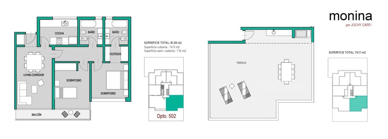 Esta residencia exclusiva, ubicada en el 5° piso al frente del edificio MONINA, fue concebida para quienes valoran el diseño, la luz natural y los espacios exteriores como parte esencial de su forma de vivir. Su orientación Norte y su impactante vista abierta al horizonte convierten cada día en una experiencia única, donde el sol y el paisaje son protagonistas.