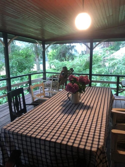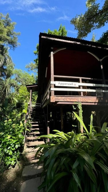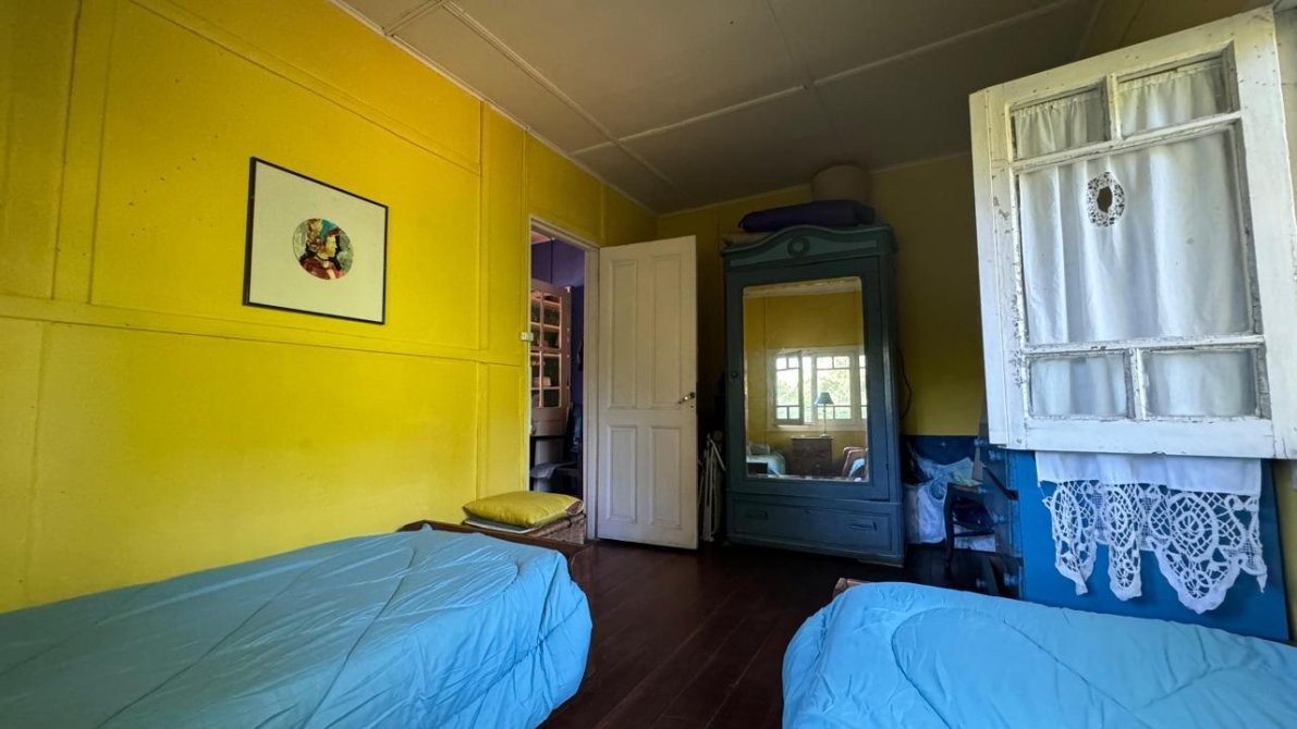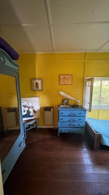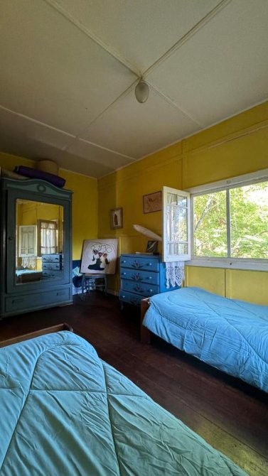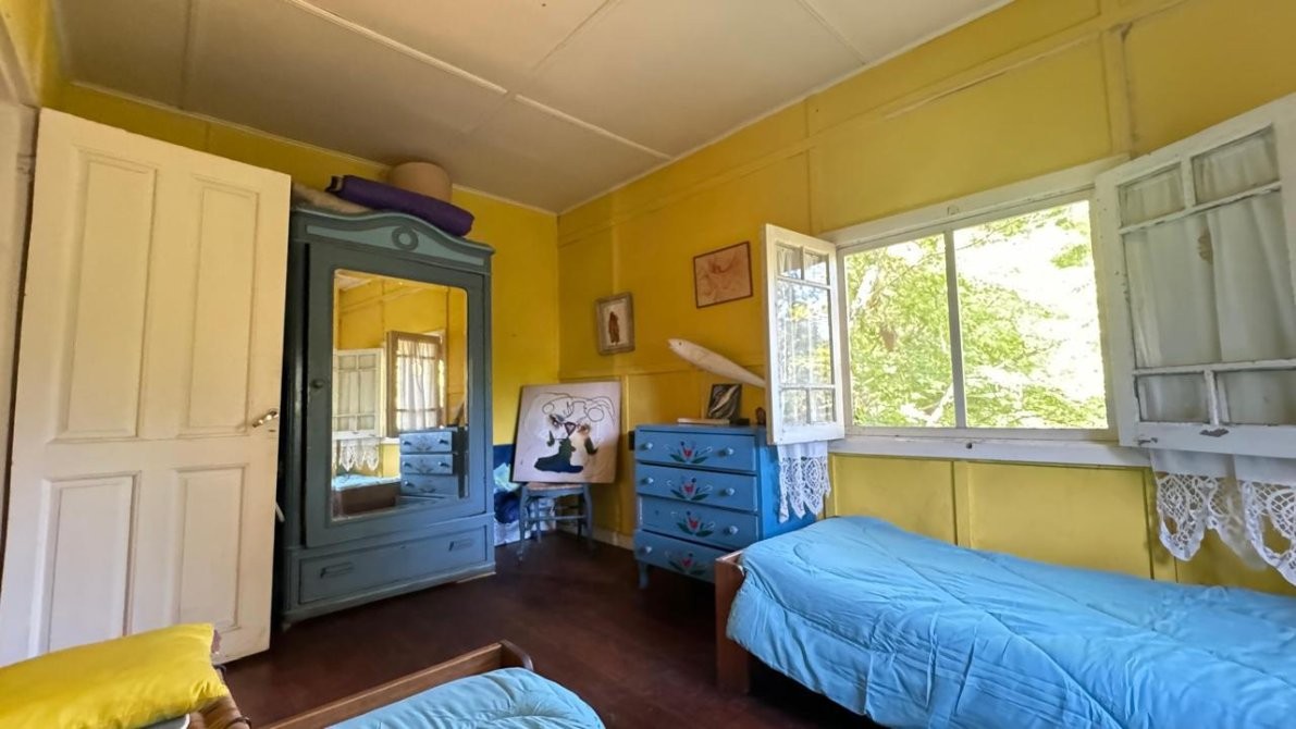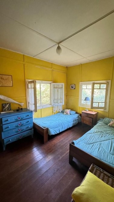 Casa de material, madera y fibrocemento con base de madera dura de 121 m2.