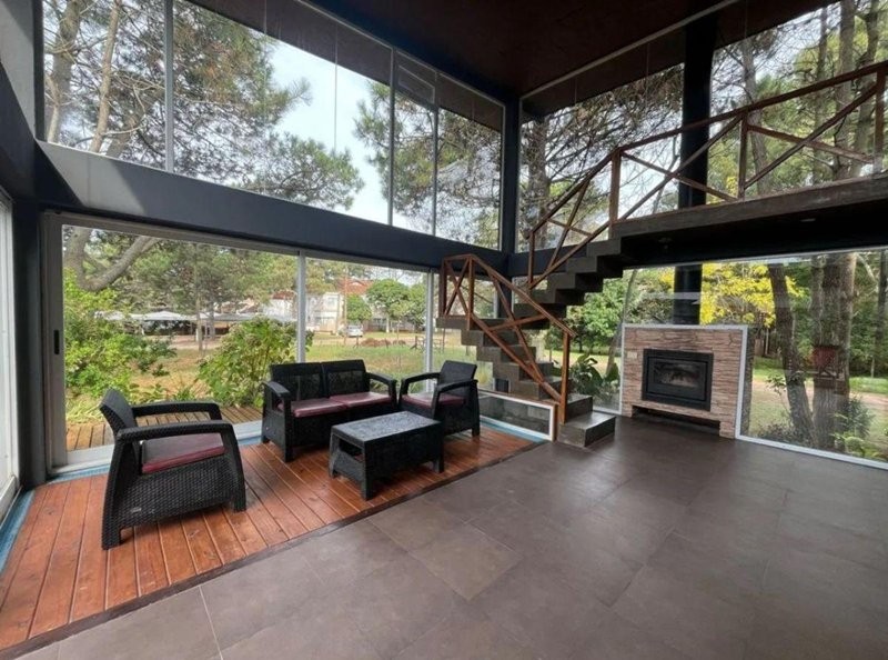 La planta baja cuenta con cocina-comedor, living con hogar a leña, baño con ducha, sauna y pileta climatizada cubierta.
