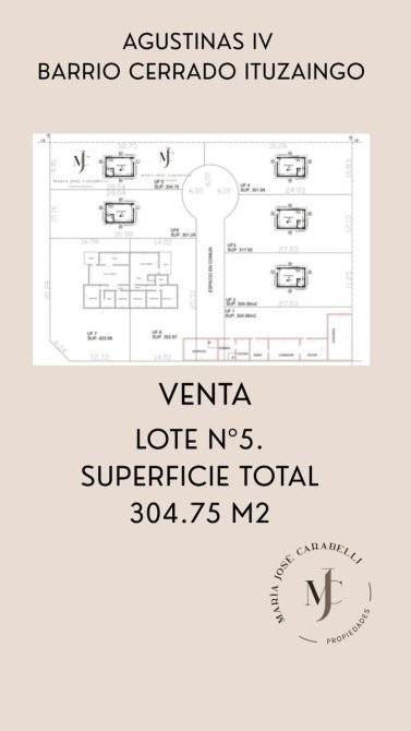 LOTE Nº 5. Superficie Total 304.75 m2