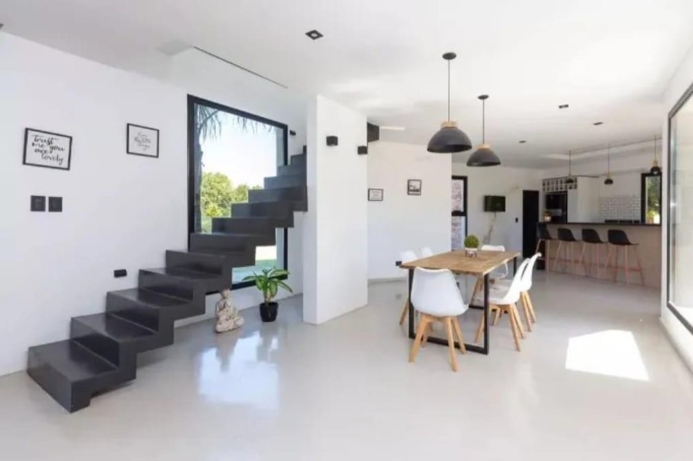 PLNATA BAJA:  Cochera para 4 autos. Amplio y luminoso Living comedor. Cocina comedor con isla.Toilette de recepcion. Oficina/ escritorio con entrada independiente.  Baño completo. Lavadero con entrada de servicio.
