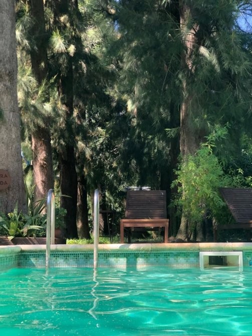 -Galeria cubierta  . Parque  libre. Piscina.
