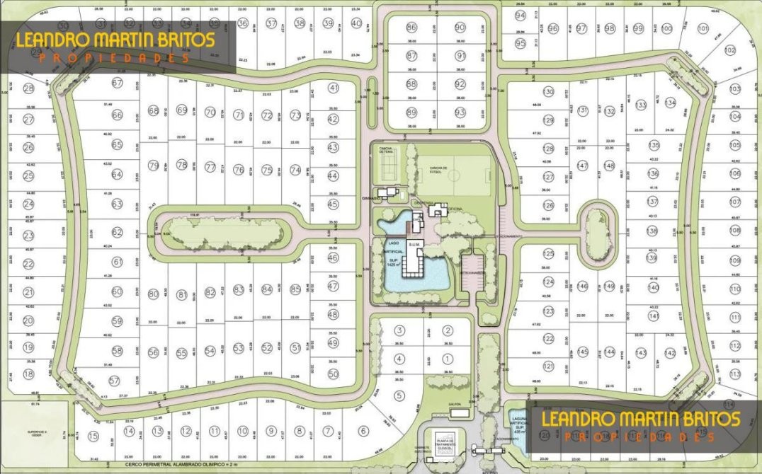 Posee una laguna central con una hermosa arboleda añeja, Es un barrio autosustentable con energia renovable solar.