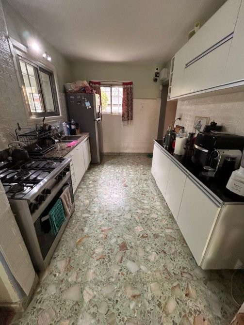 La propiedad cuenta con tres dormitorios con placares y pisos de parquet, baño completo y una cocina-comedor diario con pisos simil mármol y muebles de melamina, funcional y luminosa.