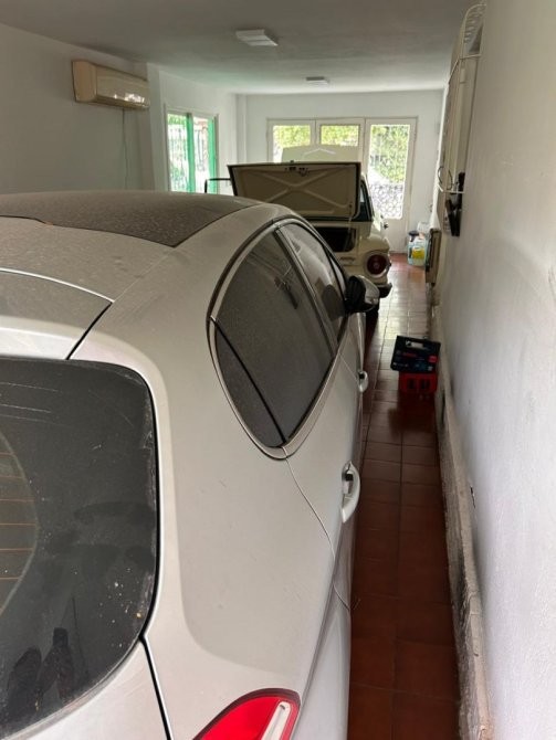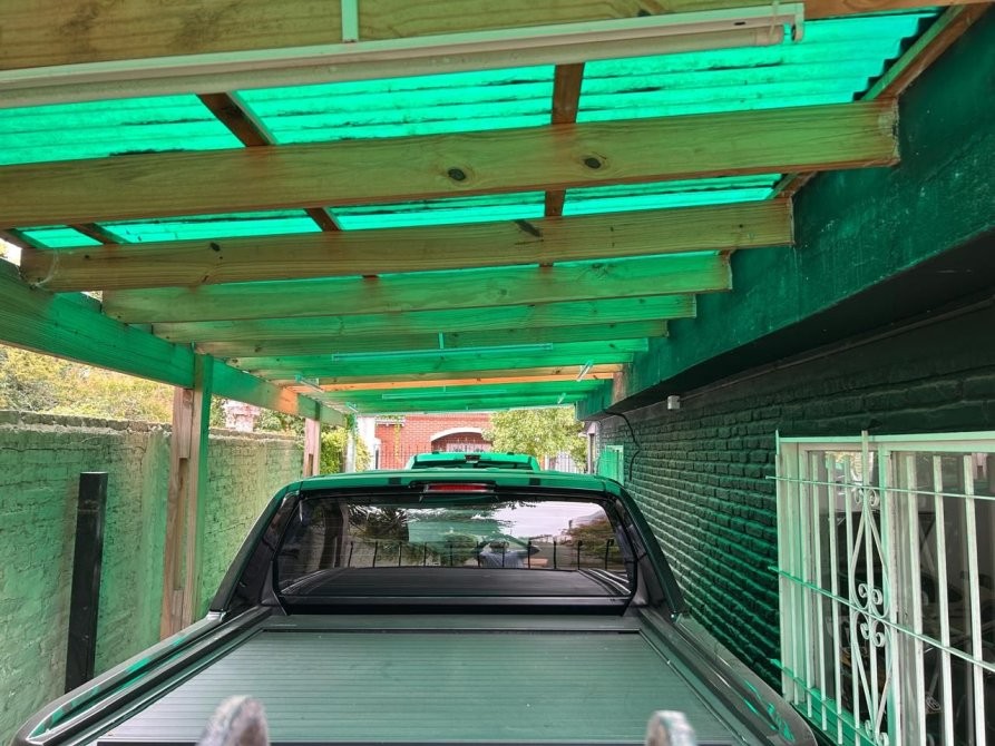Completa la propuesta un garage semicubierto para dos autos y espacio adicional para un tercer vehículo.