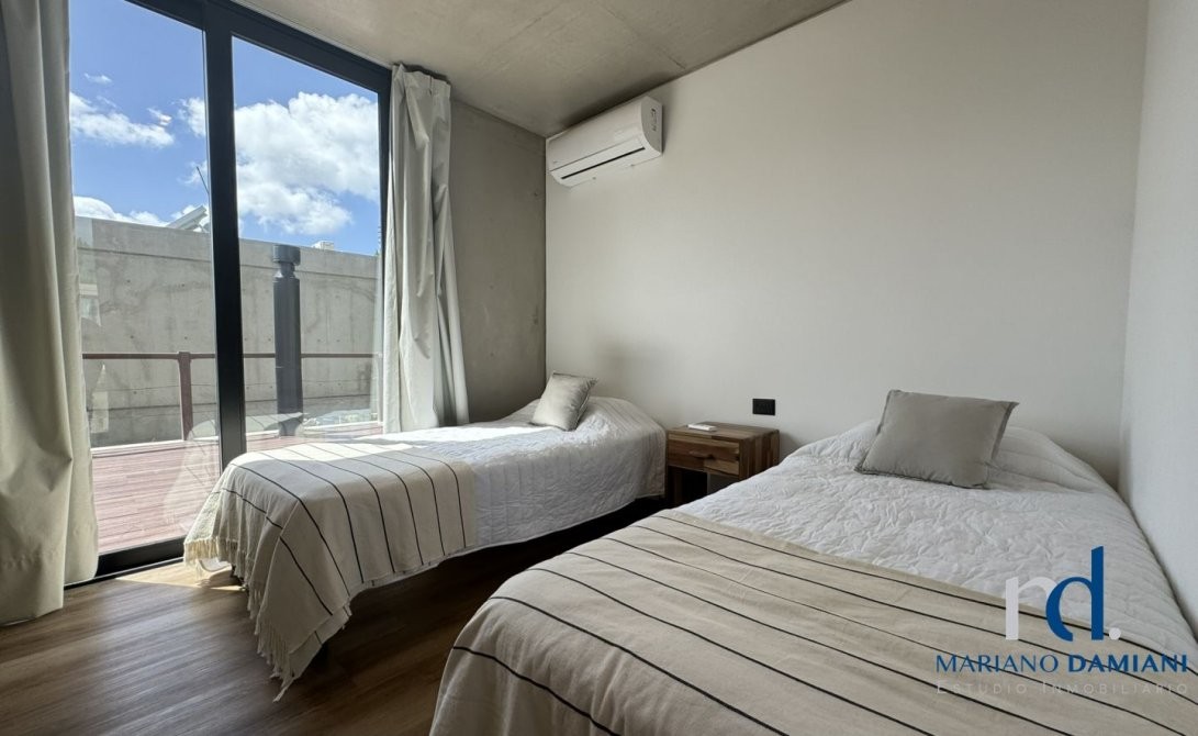 - Dormitorio con dos camas individuales, aire acondicionado y salida al balcon.
