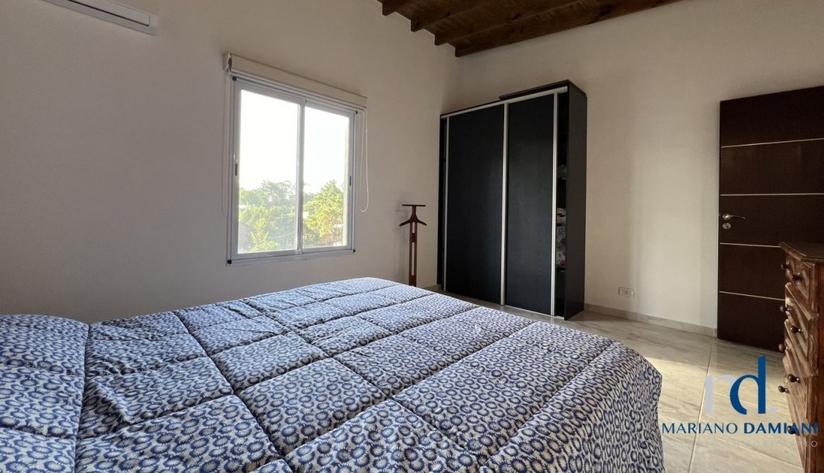 - Dormitorio principal con cama matrimonial con aire acondicionado.