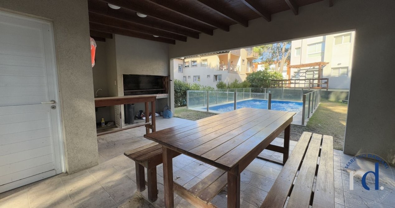 El complejo cuenta con pileta y quincho. Ademas la propiedad cuenta con los servicios de TV, Wi-Fi y alarma monitoreada.