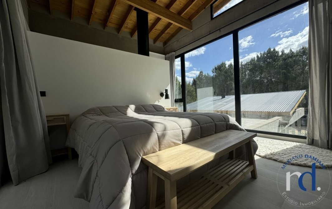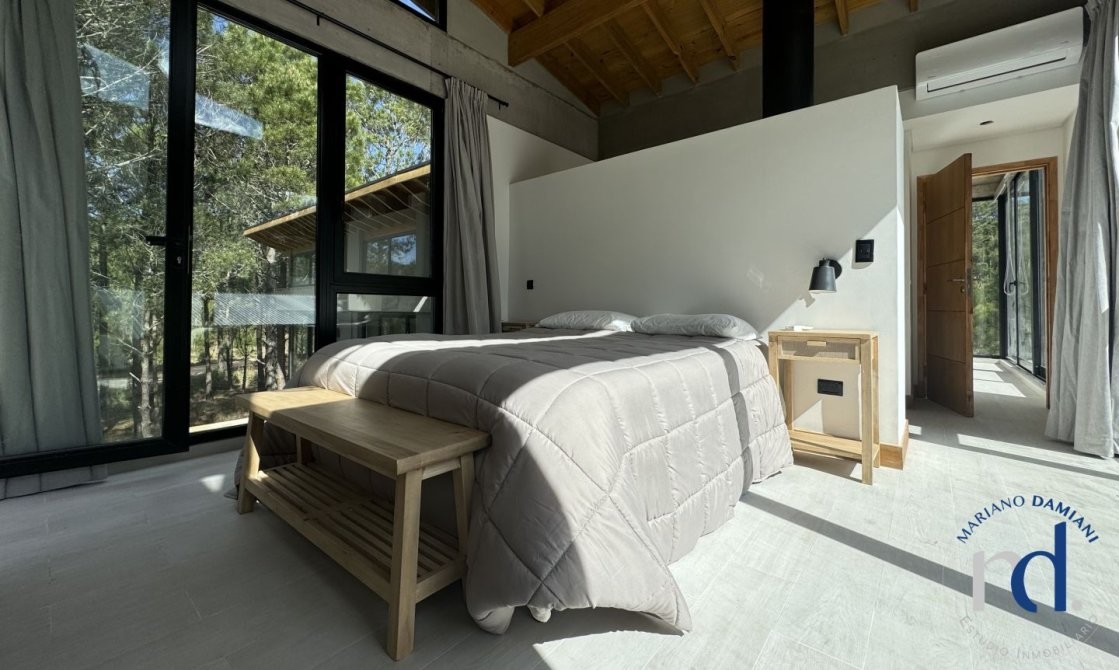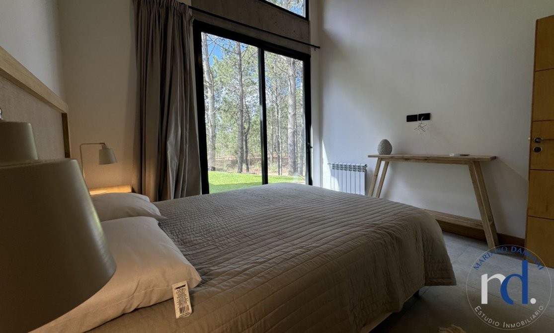 - Dormitorio principal con cama matrimonial en suite con vestidor y balcón.