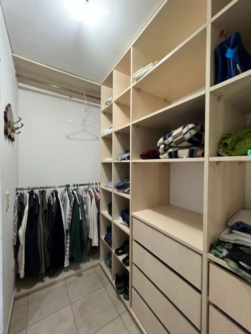 - Dormitorio principal con cama matrimonial con vestidor en suite.
