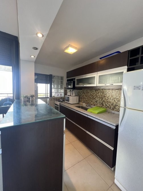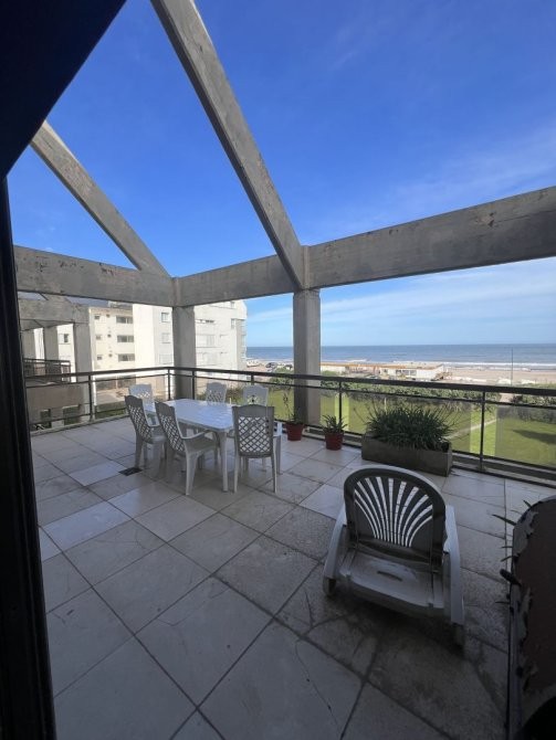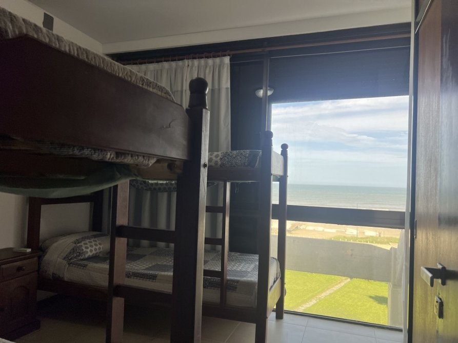 Hermoso departamento frente al mar, tipo duplex,  un dormitorio en suite con vista al mar también y otro dormitorio con 4 plazas camas cucheta, living, comedor y cocina se presentan en concepto integrado, posee toilette de recepción, un gran balcón aterrazado con vista plena al mar para disfrutar del buen tiempo, la unidad tiene dos cocheras !!!