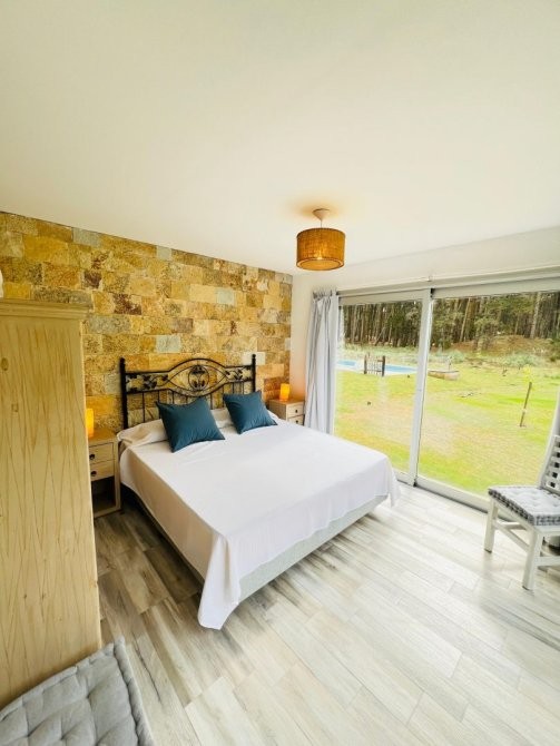 Esta bella casa, se desarrolla toda en una sola planta, cómo y práctica, dentro de un entorno de bosque bello y armonioso.
