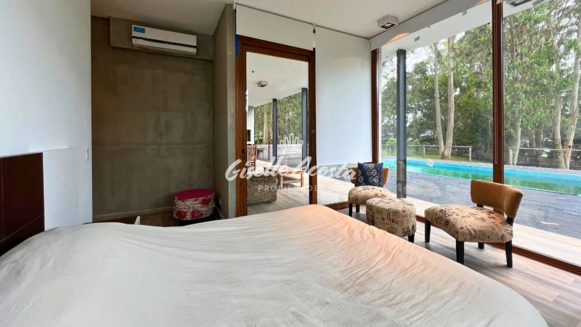 En la planta alta se encuentra una MASTER SUITE con ante baño, vestidor, baño separado, doble duchas separadas, Jakuzzi con hidromasaje y doble bacha. Balcón con hermosa vista al jardín y a la piscina.